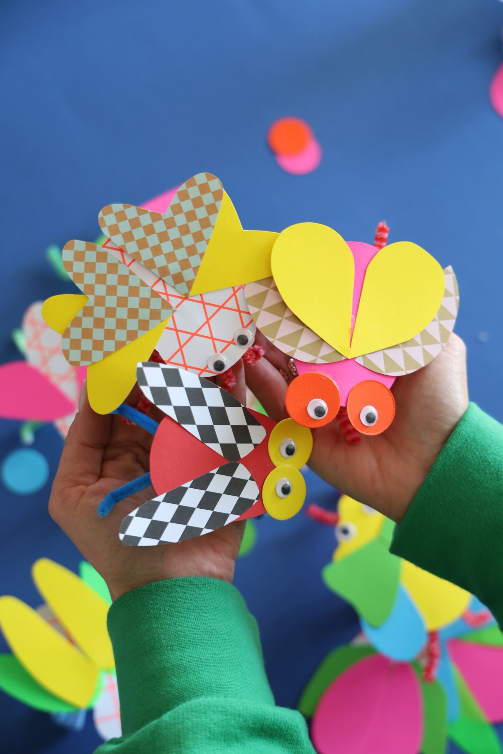 Estes nossos insetos são de papel, mas também podem fomentar a criatividade se, por exemplo, criarem histórias e cenários imaginários com eles…Como um teatro educativo depois de fazerem e decorarem os insetos!